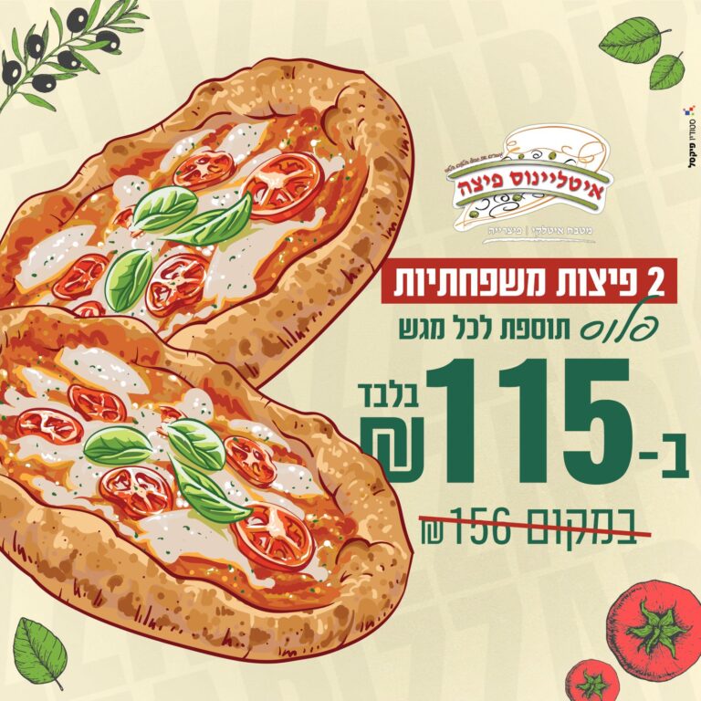 2 פיצות משפחתיות + 2 תוספות - איסוף עצמי בלבד